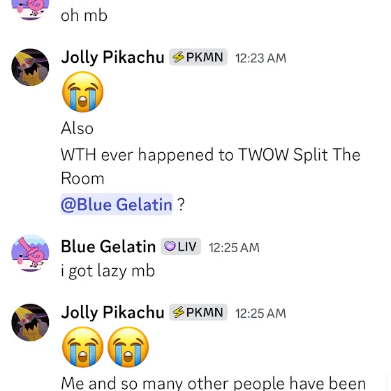 This is an apology to βͺ@OshaGDβ¬. I cut off his response in JWOW 1 and he lost a life because of that. To apologize, heβll get a speaking role in JWOW 3A. Sorry OSHA
