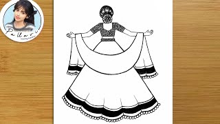 How to Draw a Girl with Lehenga | drawing girl | How to Draw a Girl with Beautiful Traditional dress