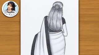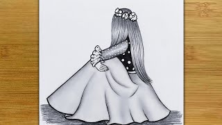 How to draw a girl with beautiful dress for beginners || Pencil Sketch step by step drawing tutorial