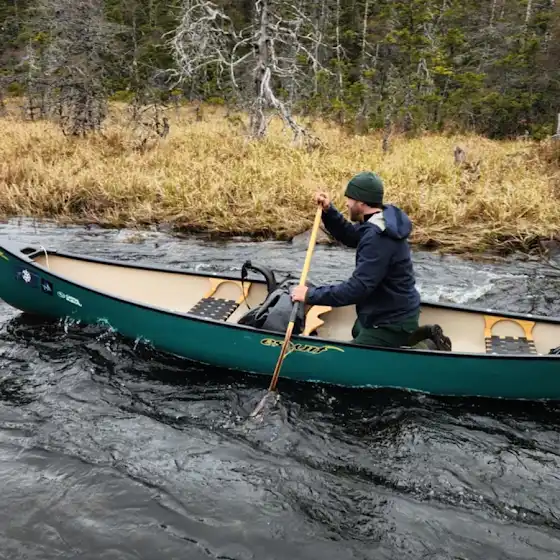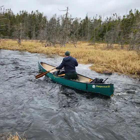 This Esquif Prospecteur canoe was and still is a durable, enjoyable boat to paddle. Perfect for expeditions alone or with a partner. It's 15 feet and weighs 60lbs. A capable, hardy vessel.