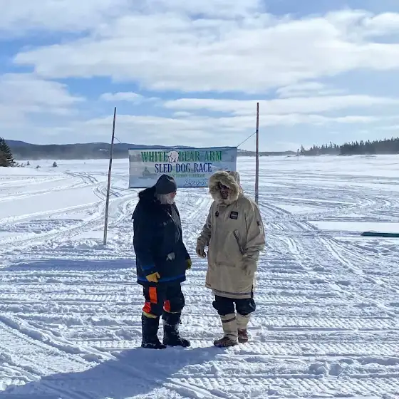 The 'hoist' is the ritual as each racer crosses the finish line in Charlottetown Labrador's White Bear Arm Sled Dog Race - what an honor to partake in the event. The Labrador spirit of outdoor life and adventure in the country pulsed through my veins at this time!