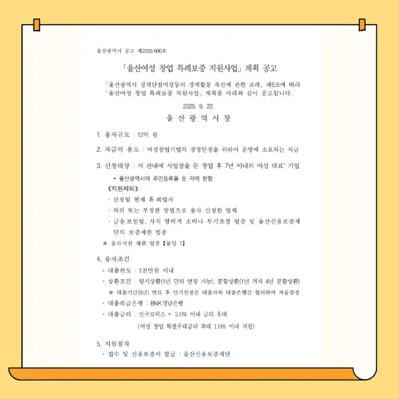 「 2025년 울산여성 창업 특례보증 지원사업」