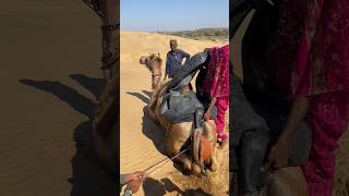 كانت الفتاة تجلس بجوار الجمل ولكن عندما شعر بالحكة بدأ الجمل بالاستلقاء على الأرض شعرت الفتاة بالخوف