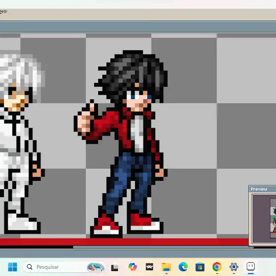 Obs: se alguém puder me recomendar um programa gratuito de editar sprites pelo computador eu ficarei grato, o que acontece é que o programa que eu usei é de teste e não pode salvar as sprites nela, só na versão original que tá custando em dólar, ou seja, estou precisando muito de ajuda para achar um programa desses só que gratis.