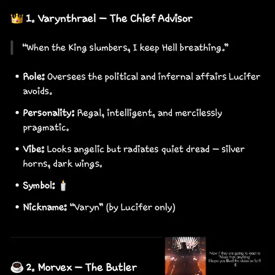 MEET MY HAZBIN HOTEL OC VARYNTHRAEL! or Varyn in short ๐๐ซถ I got some help from Chatgpt since I was sooo confused whether To make Varyn a sinner or a Overlord๐๐BUT I got the best idea! Which is just some ocs where they just Lucifer for the past 7 years (he made the ocs mentioned in the other photos) cuz I refuse to belive that he left all his Royal duties ๐๐๐ anywho 1/4 ocs done ๐ฅน๐ซถ