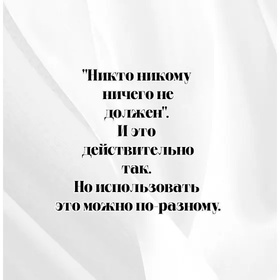 "Никто никому ничего не должен". И это действительно так. Но использовать это можно по-разному.