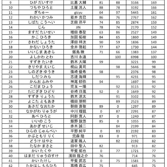 U-30 연간종합성적 95명중 14등으로 마무리했습니다