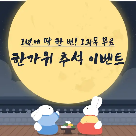 단 일주일 동안만 진행되는 추석 맞이 1과목 무료 이벤트!