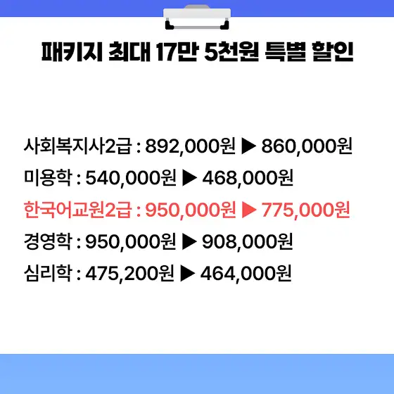 한국어교원2급 기준 최대 8% 추가 할인