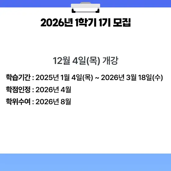 학점인정: 2026.01 / 학위수여: 2026.02