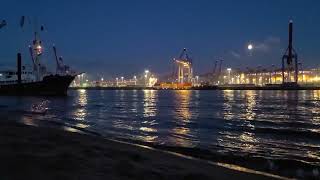 Korea East Sea Waves at Night