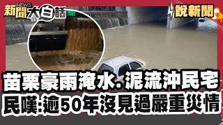 There's a waterfall behind my house! Heavy rains in Miaoli caused flooding in the Tianliao irriga...