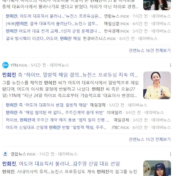 어도어 대표이사이신 민희진 대표님이 해임되었다고 하네요