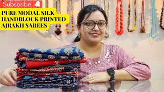 Pure #Modal #Silk #Ajrakh #Handblock Printed #Sarees with blouse piece 9804594021 #ajrak #sari Part1