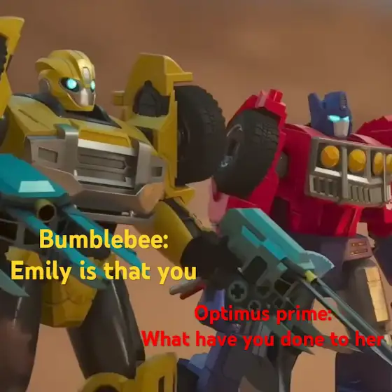 Emily saw something in the sky before she saved them Bumblebee and Optimus prime and elite 1