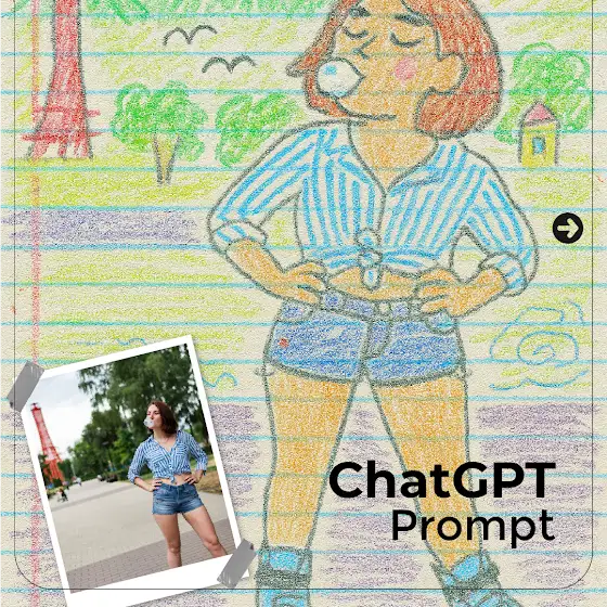 Transforma la foto subida en un divertido dibujo con crayón en papel de cuaderno rayado. Mantenga la forma original de la cara, el tono de la piel, el peinado, la expresión y el atuendo exactamente como en la foto, pero vuelva a imaginarlos usando trazos de crayón ásperos e desiguales y contornos audaces.