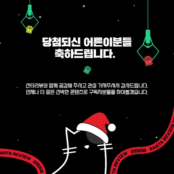 당첨자 발표 : 2025년 02월 11일(화) ‘산타리뷰’ 커뮤니티 공지