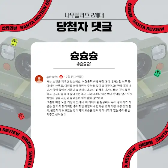 당첨자 발표 : 2025년 01월 28일(화) ‘산타리뷰’ 커뮤니티 공지