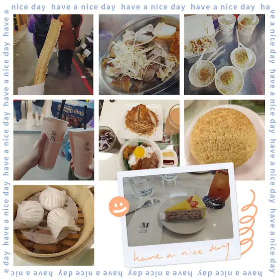 中餐吃:恆之茶居,中間下午茶吃:LADY M千層蛋糕,晚上師大夜市的米粉湯、生煎包、吉拿棒、飲料:龍角的蜂蜜牛奶珍芋