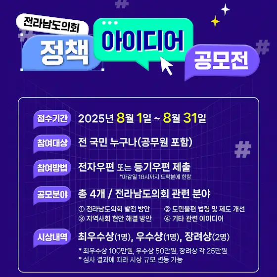 💡2025 전라남도의회 정책아이디어 공모전