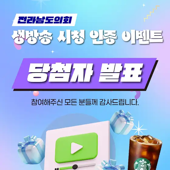 🎉 전라남도의회 생방송 시청 인증 이벤트 당첨자 발표! 🎉