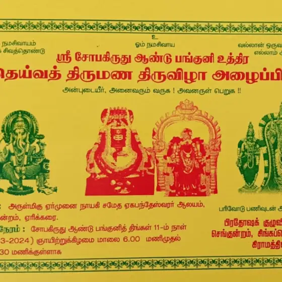 பங்குனி உத்திர தெய்வத் திருமண திருவிழா அழைப்பிதழ்