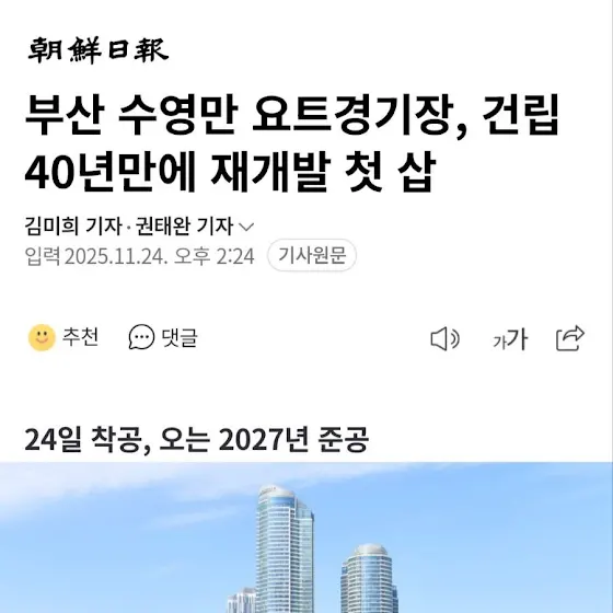 2. <그린시티 2구역 선도지구 지정>으로 좌동 일대의 스카이라인이 완전히 바뀝니다. 다음은 다른 구역들 차례입니다.