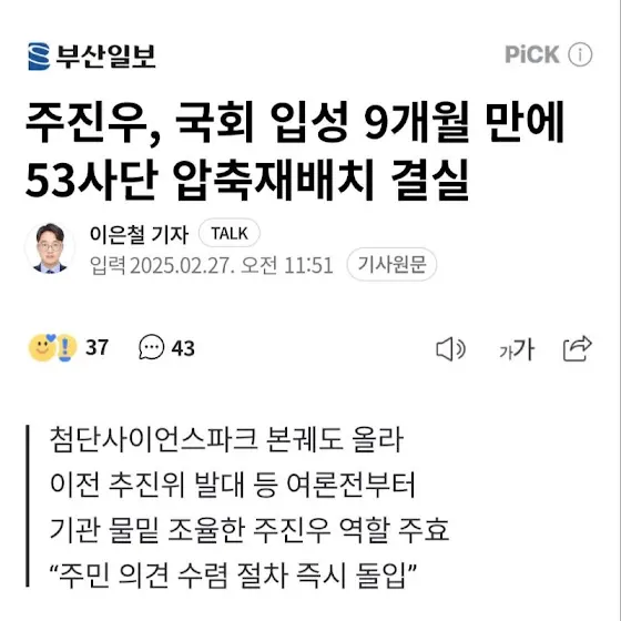 사랑하는 주민 여러분과 함께 해운대의 지도를 바꾸고 있습니다. 천지개벽 그린시티 3대 프로젝트!1. <53사단 부지>는 20년 만에 ‘지역 전략사업’으로 선정되었고, 그린벨트 총량제의 허들을 넘었습니다. 새 도약의 상징입니다. 2. <그린시티 2구역 선도지구 지정>으로 좌동 일대의 스카이라인이 완전히 바뀝니다. 다음은 다른 구역들 차례입니다. 3. <KTX-이음 신해운대역 정차>는 서울까지 3시간대 주파를 이룰 것입니다. 주민 총의가 모인 만큼 내일 발표에서 좋은 결과가 있을 것입니다. 이제 <신해운대역을 해운대역으로 개명>하는 것을 새로이 추진해 브랜드 가치를 확 높여 놓겠습니다.아울러 <BuTX 민자 적격성 통과>, <수영만 요트경기장 재개발>, <수영강 휴먼브릿지 조성>, <광안대교 접속도로 연결>, <영화의 전당 앞 지하도로 건설>도 모두 순항 중입니다. 존경하는 주민 여러분께 곧 의정 활동 내용을 보고드리겠습니다. p.s. 오늘 우리 당협의 <정성철 사무국장>이 퇴임식을 합니다. 당협 식구들과 함께 많은 성과를 이루시느라 고생하셨습니다. 사랑합니다.