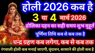 Holi Kab Hai 2026 | Holika Dahan 2026 | Holi Kb h 2026 | होलिका दहन शुभ मुहूर्त 2026| chandra grahan