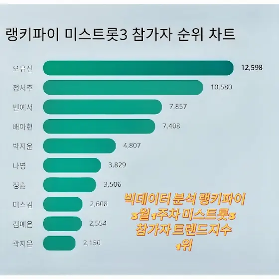 주시면 우승합니다. 검색량 1위, 스타성 1위 오유진.
