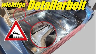 Using a pneumatic chisel and a wooden template to cut into the trunk floor, we'll mount the new r...