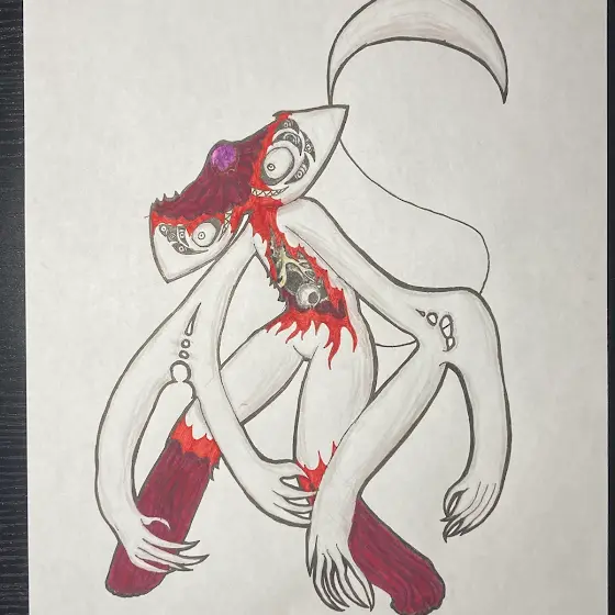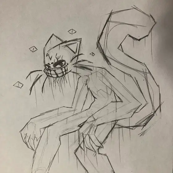 No one’s gonna see this but here’s a sketch of a creature i had the idea of for a long time (not exactly how I want it though)