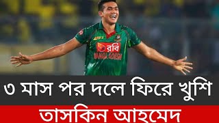 ৩ মাস পর দলে ফিরে খুশি তাসকিন আহমেদ