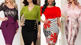 regular wear Slimfit two piece women fashion design midi bodycon pencil skirt with top blouse shirts