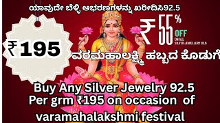 ವರಮಹಾಲಕ್ಷ್ಮಿ ಹಬ್ಬದ ಆಫರ್ನಲ್ಲಿ 92.5 @ ₹195 ರ ಯಾವುದೇ ಬೆಳ್ಳಿ ಆಭರಣಗಳನ್ನು ಖರೀದಿಸಿ/ Any Silver jewelry 195