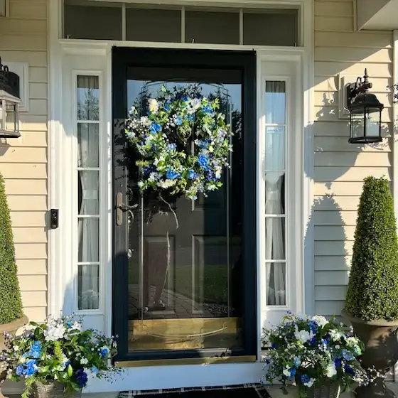 I absolutely love the way the blue and purple flowers compliment my siding and brick on my front porch! I can't recommend enough the spring line from @balsamhillofficial . They are currently running their spring sale and you can get up to 50% off plus free shipping! Check them out! Outdoor Seaside Cottage Wreath: bit.ly/3zXh55i Outdoor Seaside Cottage Hanging Basket: bit.ly/40bwwkO Outdoor Seaside Cottage Potted Flowers: bit.ly/4050xTu Cone - Outdoor Boxwood Topiary: bit.ly/3L7QYit