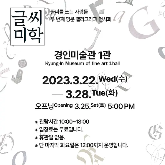 화창한 봄날 인사동 경인 미술관에서 42인의 다채로운 영문 캘리그라피 작품 감성하러 봄나들이 오세요.