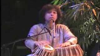 Live performance footage of Indian tabla master Zakir Hussain