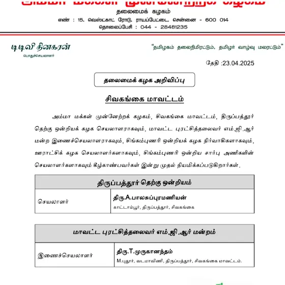 அமமுக சிவகங்கை மாவட்ட செய்திகளை உடனுக்குடன் பார்க்க.🔍