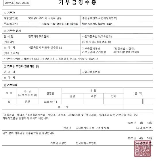 지난번 영상을 통해 광고비 수익을 전액 기부하겠다고 말씀드렸던 것 처럼 전액 기부하였습니다.