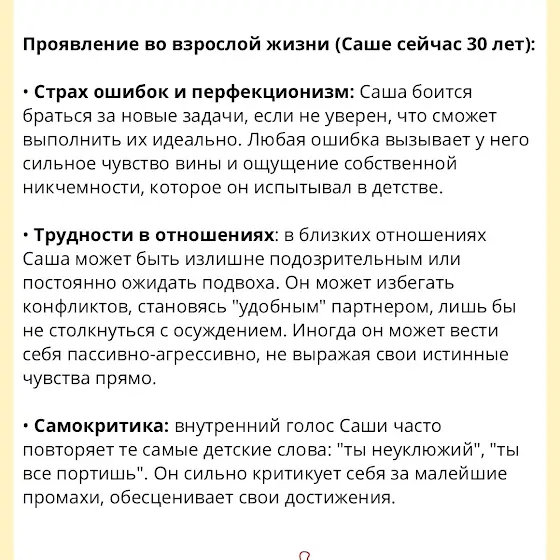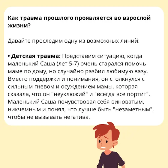 За привычкой всё контролировать, спасать других или бояться близости часто стоит детский опыт, где было мало стабильности и безопасности.