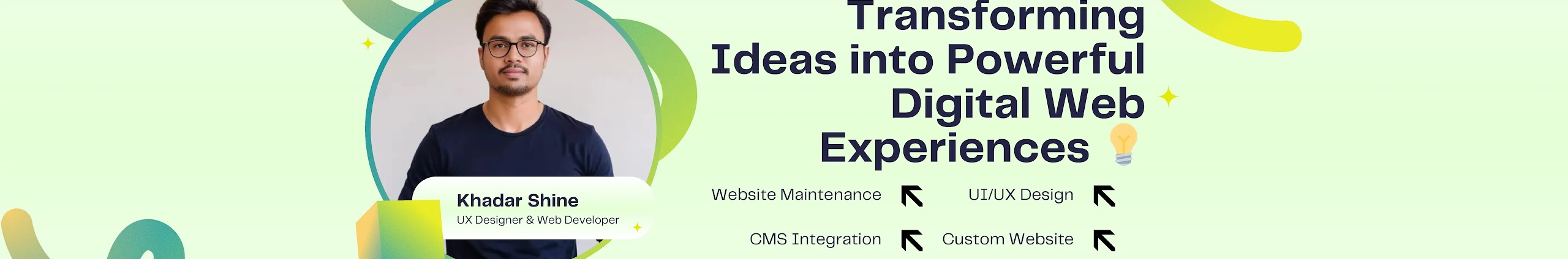 I'm Khadar Shine, a UX Designer, Web Developer & Digital Coach from Hyderabad, India ๐ฎ๐ณ. With 12+ years of experience, I simplify technology for everyone โ from beginners to small businesses.