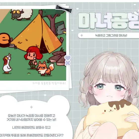 【뱅온알림】chzzk.naver.com/live/b5b18dc043cbf37ee67e4615687b8…왕~! 오늘은 마녀가 곰딩이 그림을 마구마구 그려주는 날 이래요~!오늘은 우선 마녀가 말한 이후 열심히 !투표 1번으로 참여를 할 수 있어요!참여 이후 차례를 기다려요~본인의 닉네임을 불렀을때 1분이내로 나타나지 않으면 다음사람에게 차례가 넘어가요!다음에 다시 뽑힐때까지 기다려야해요 ;ㅅ;꼭 자리하구 기다리기!뽑힌 곰딩씨는 해당 동물에 본인의 닉네임을 붙여드려요!이때 원하는 녹음 대사를 알려주시면 마녀가 거기에 맞춰서 녹음을 합니다!본인의 동물이 마음에 들고! 오늘의 컨텐츠를 프사로 하고싶으니그림으로 그려주세요!하는 곰딩씨는 2만치즈로 프로필사진을 받아갈 수있어요!오늘 모든 동물 녹음을 마치고 나면가장 귀여웠던 동물 인기투표를 할껀데!가장 귀여웠던 동물느낌 잠옷을 입은 마녀폰배경화면을 만들어서곰딩씨에게 배포할예정이니 처음부터 끝까지 함께해주세요!그림그리기는 모든 동물의 녹음이 끝난 후후열로 진행예정이고! 후열시에는 곰딩씨가 듣고싶은 노래를 틀수있게영도데이를 열어줄 예정이에요!영도는 꼭 JPOP으로 통일해주시고 제이팝이 아닌 다른 영상도네를 보내실경우 스킵될 수 있습니다!