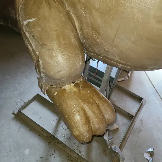 Barney has feet again! Both were previously broken off and his left was missing altogether. I need to fiberglass over the crack on his right foot but it's currently fiberglassed on the inside so it's secure. Now he just needs some hands!