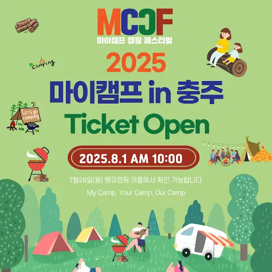 🎪 제4회 마이캠프 캠핑페스티벌(2025) – 캠핑권 티켓팅 오픈 안내! ⠀ 온 가족이 함께 즐기는 국내 최대 규모의 감성 캠핑 축제 입니다. 자연 속에서 즐기는 다채로운 공연, 체험, 게임, 그리고 다양한 캠핑 브랜드와의 만남이 있는 2025 마이캠프 in 충주