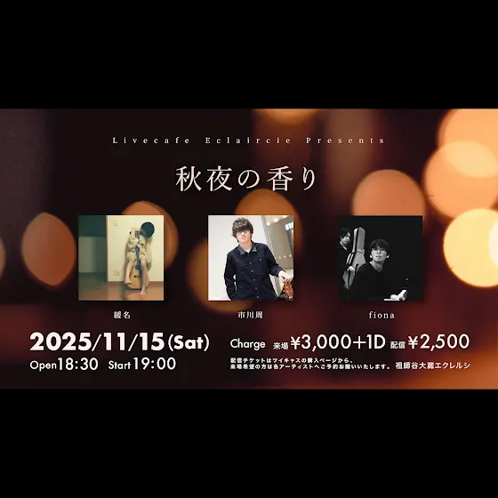 ⭐︎市川周ライブ情報⭐︎10/10(金)東京@祖師ヶ谷大蔵エクレルシ「ほのかに灯る秋のおと」Open18:30/Start19:00来場チケット¥3,000+1Drink