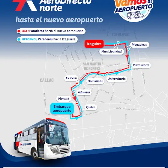 🚌Conoce las cinco rutas del #AeroDirecto, el servicio de transporte público que te llevará al nuevo Aeropuerto Internacional Jorge Chávez.