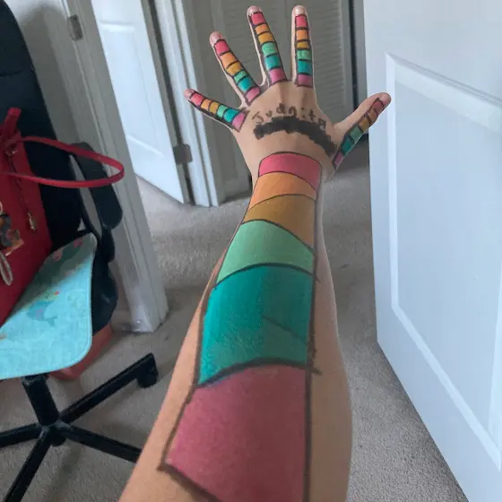 Lool at wat I did to my arm🎀 also kinda how to spell/name reveal?