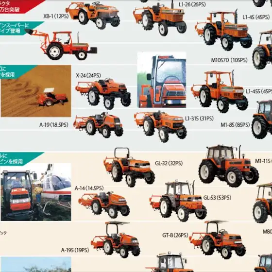voila toutes la chronologie des sorties tracteur KUBOTA depuis 1960