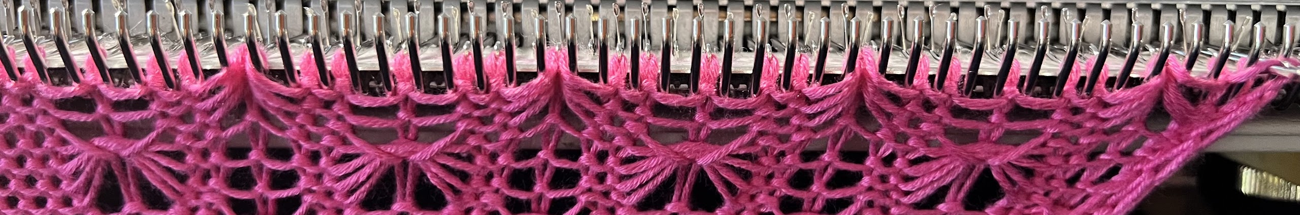 I am obsessed with lace patterns and convert them to knitting machine. If you see lace pattern you like and don’t know how to convert it to knitting machine, send me a message and I’ll be happy to help out.